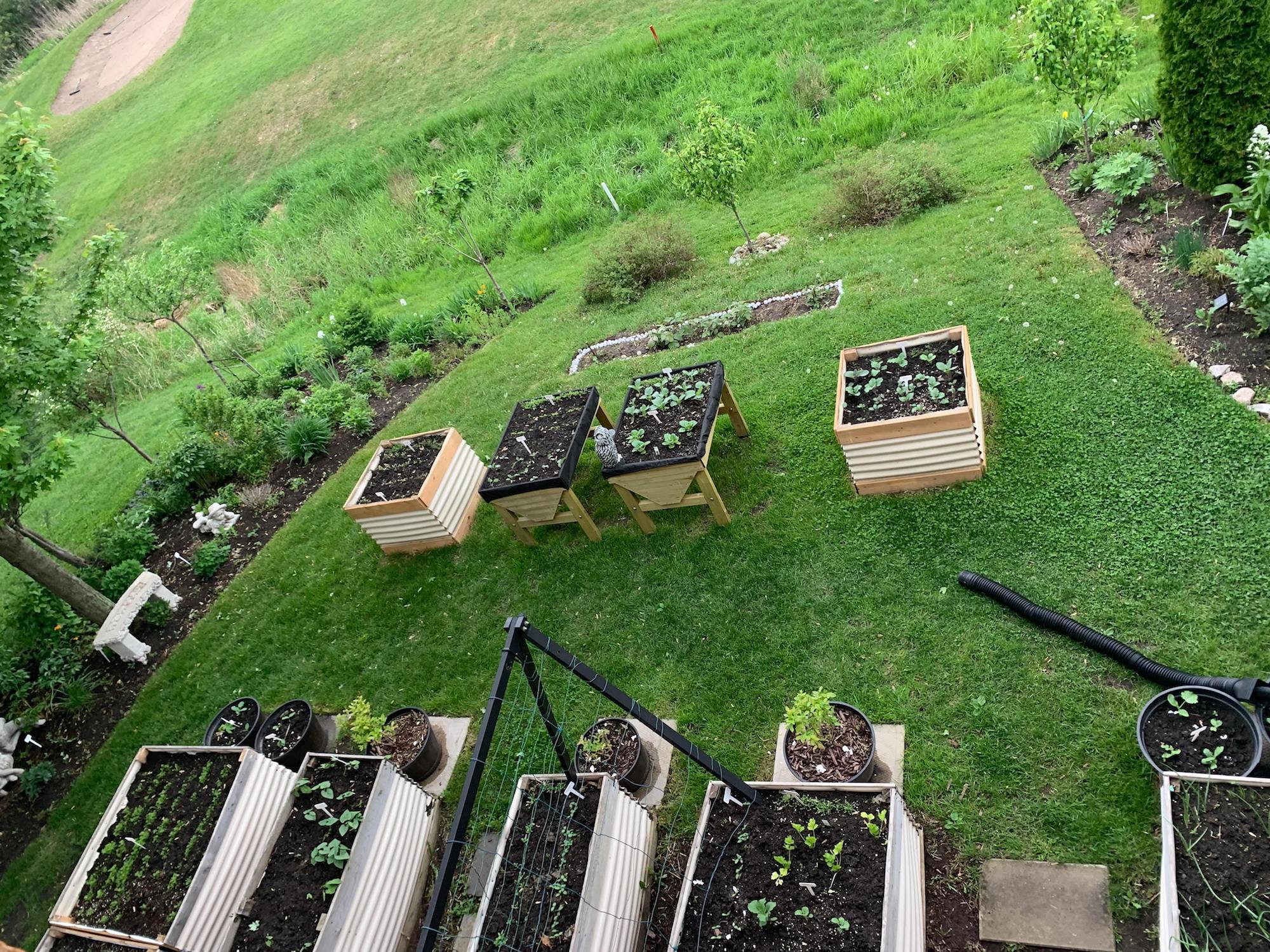 “Vegetables are all grown from seed. Flowers acquired from Ritchie’s. Dirt is acquired from my in-laws. No pesticides are used.”