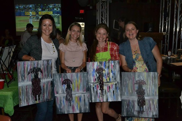 The girls at PaintNite. From left: Céline Forgues, Geneviève Henrie, Jennifer Larocque and Michèlanne Benoît showing off their masterpieces. Photo provided by Jennifer Larocque.