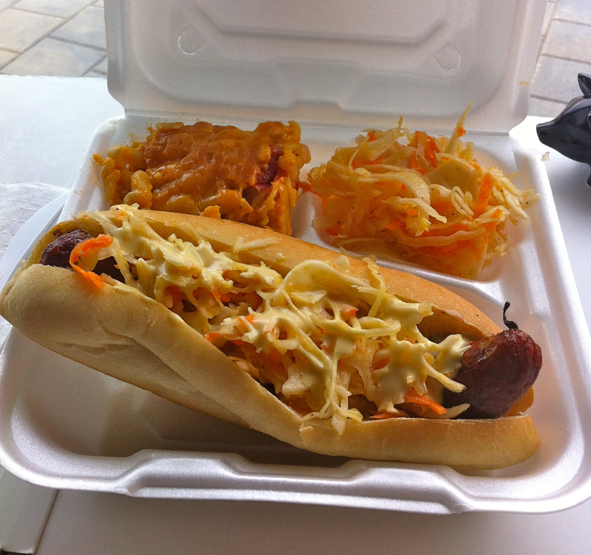 Although it’s Zydeco’s pulled pork that is making a name for itself, we decided to try other items on the menu. I went for the Andouille sausage with the coleslaw and mac and cheese while my companion tried that day’s special, beef brisket rubbed in mustard and smoked with Mesquite wood and a side of baked beans. The sausage was great – lots of subtle flavours ending with a nice spicy kick. The sausage was covered in delicious creamy slaw. My side coleslaw was the perfect accompaniment – crispy cabbage, a bit of apple and a nice acidic finish that nicely complemented the rich flavours of the sausage. I also liked the mac and cheese, which was just the right consistency and saltiness. The weak meal’s weak point was the bun, which seemed like your standard grocery store issue. For me it was the worthy of that expertly smoked sausage.