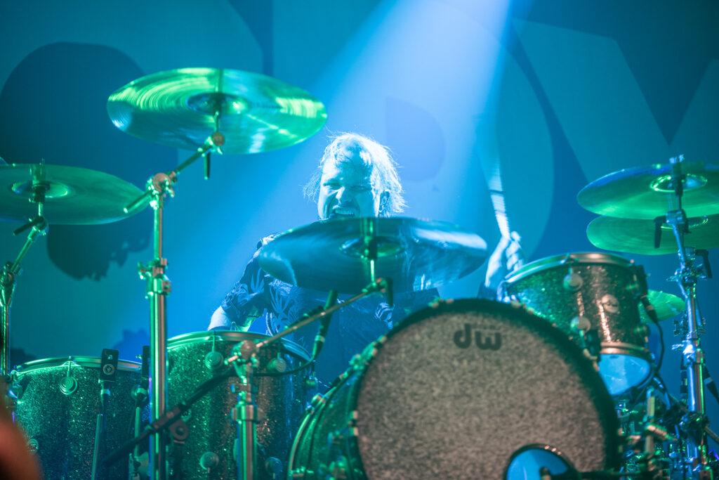In a wash of lights, and the air filled with haze, Theory kicked the night off with “Dinosaur”, the title track of their newest album. With a career spanning more than 23 years, the band has no shortage of material to pull from, and the set reflected a selection of old and new material, including segues into snippets of brief covers such as Garth Brook’s “Friends in Low Places”, appropriately placed at the end of the song “Lowlife”, as well as the covers that the band has officially recorded such as “Wicked Game” (Chris Isaak) and the more recent “Just The Two of Us” (Bill Withers).