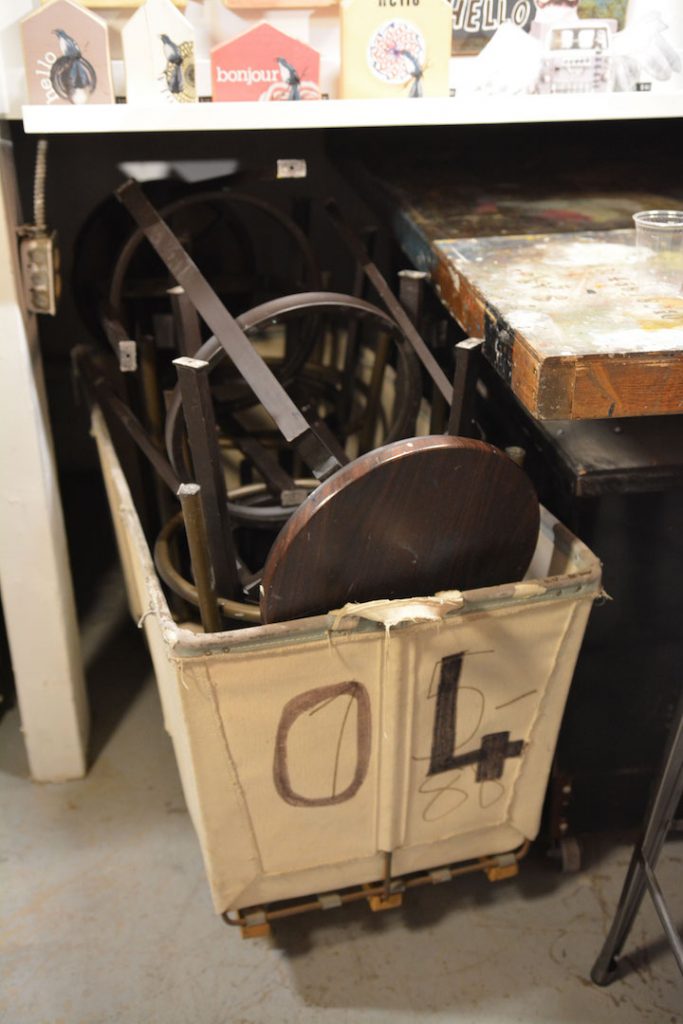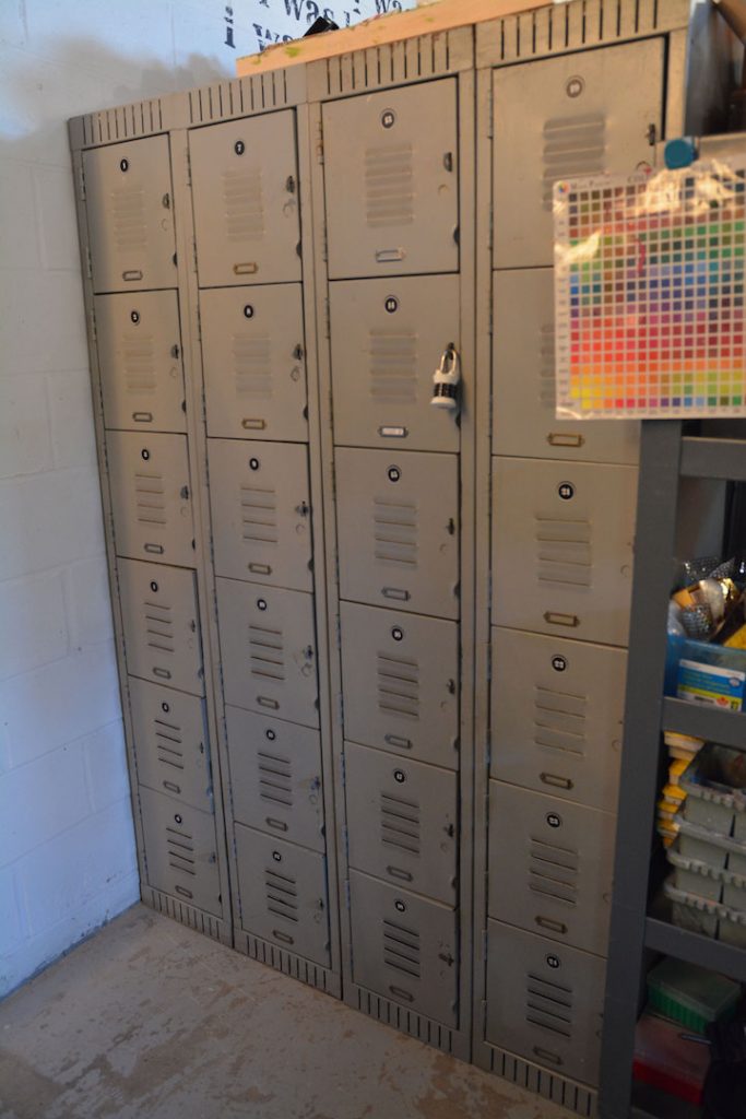 There are 14 creative stations. These are all mobile, so different configurations can be made to adjust to project demands. Rental lockers and rollaway project bins mean that you can work on your project during your free time, then stow it away until next time. The space can then be freed up for another artist and classes.