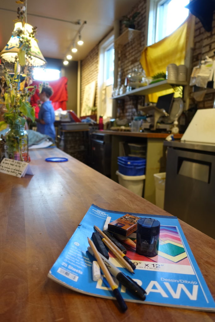 “There is a relaxed, casual vibe, with funky music playing in the background and a peaceful sense of camaraderie in the air,” says Hodge. “It is called an ‘Art Circle’ now, because it is meant to be inclusive for all types of artists. The venue is set up for drawing but people are welcome to write music or poetry or any other type of art of their choosing, as long as it doesn’t interfere with the other attendees.”