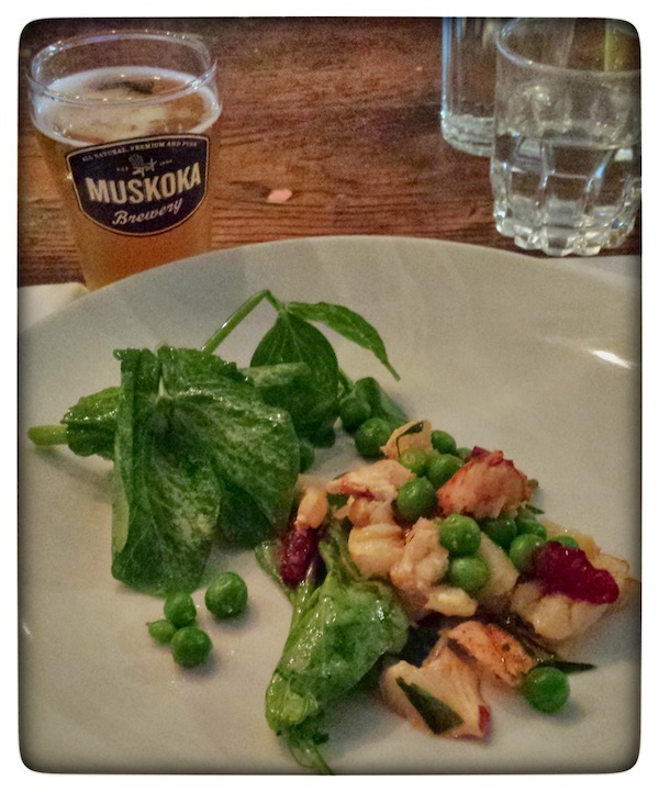 The first course paired Muskoka’s Summer Weiss with lobster salad, made with raspberries, fresh peas and tasty snow pea shoots. Muskoka’s seasonal Summer Weiss is a German style wheat beer, made with Noble hops, wheat and barley. A bright golden brew with notes of banana and spice, this beer is a great replacement for the OJ at the breakfast table – it’s great with bacon and eggs!