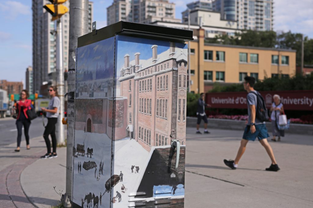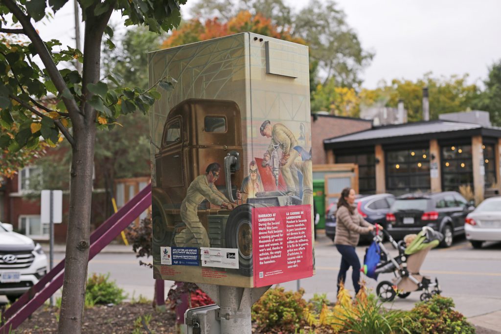 Seventeen mechanical boxes owned by the city, usually cloaked in dull grey paint and countless tags, have been reimagined with vivid images of their neighbourhood’s local history. The vignettes range from Lansdowne’s lacrosse teams in the late 1890s to the role played by Hintonburg and Westboro women school teachers in the push for higher salaries.
