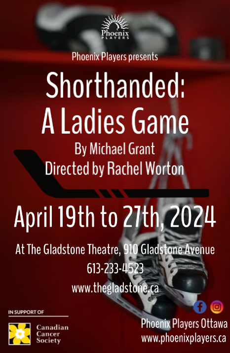 Shorthanded: A Ladies Game is playing at the Gladstone Theatre from April 19–27 at 7:30pm Tuesday–Saturday, and at 2:30pm Saturday and Sunday. To get your tickets, visit the Gladstone Theatre’s website, or email the box office at boxoffice@thegladstone.ca.