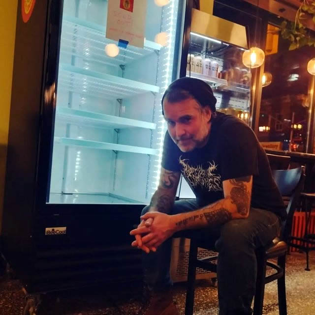 Alleway sits in front of an empty freezer, a common occurrence in the days following a new batch drop. Photo: Tim Alleway.