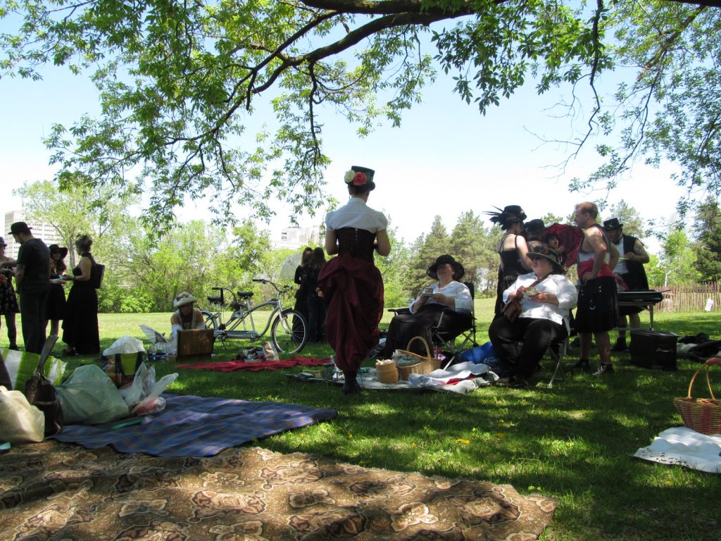 When asked why steampunk over other interests, Gailene said that steampunk will mean something different to everyone: it could be a literary genre, visual art, performance art, movies, music, or the costumes. Those involved may love the fashion, the antiques, the creativity, the fact that it’s pseudo-Victorian but with a modern twist, or that there really aren’t any restrictions to what counts as steampunk. But most importantly, she loves the celebration of creativity and the people she meets in the group, which is why she, and I’d say most of the people who attended the picnic, keep coming out to Steampunk Ottawa events.