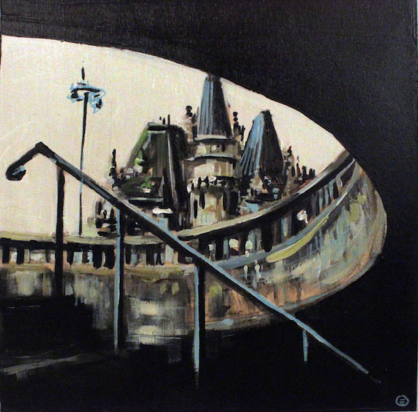The series depicts O’Neill’s perspective on cities, with an emphasis on Ottawa. Her pieces illustrate non-traditional vantage points, what she calls “seeing the city from weird angles.”