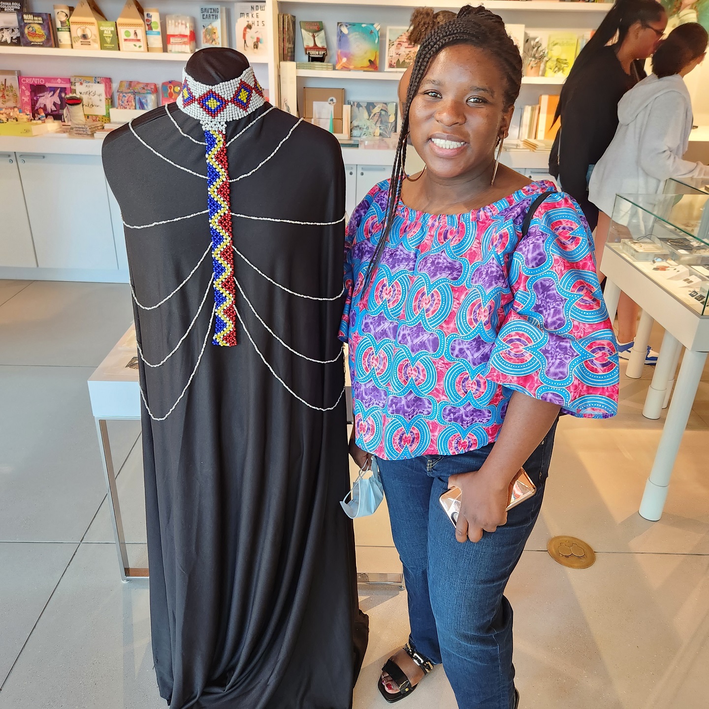 Said Joyce Tshiyoyo about her “Bukole” and “For Our Mother” body and neck ornaments: “I started learning how to bead [during] a month of rest. I had just finished my undergrad, it was during the pandemic. Beading is therapy for me, so it needs to be done when I’m resting. Even though it’s a lot of labour, it is nice, because I’m not looking at a specific timeframe. And I think about our ancestors. They actually had more leisure time than labour time, and maybe the things that they did sounded like labour, but they did it because it was also part of culture.”