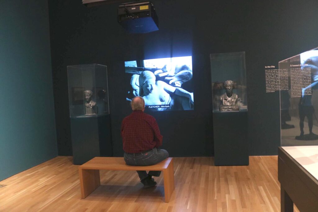 A visitor to Uninvited watches a film reel. Photo: Sarah Crookall.